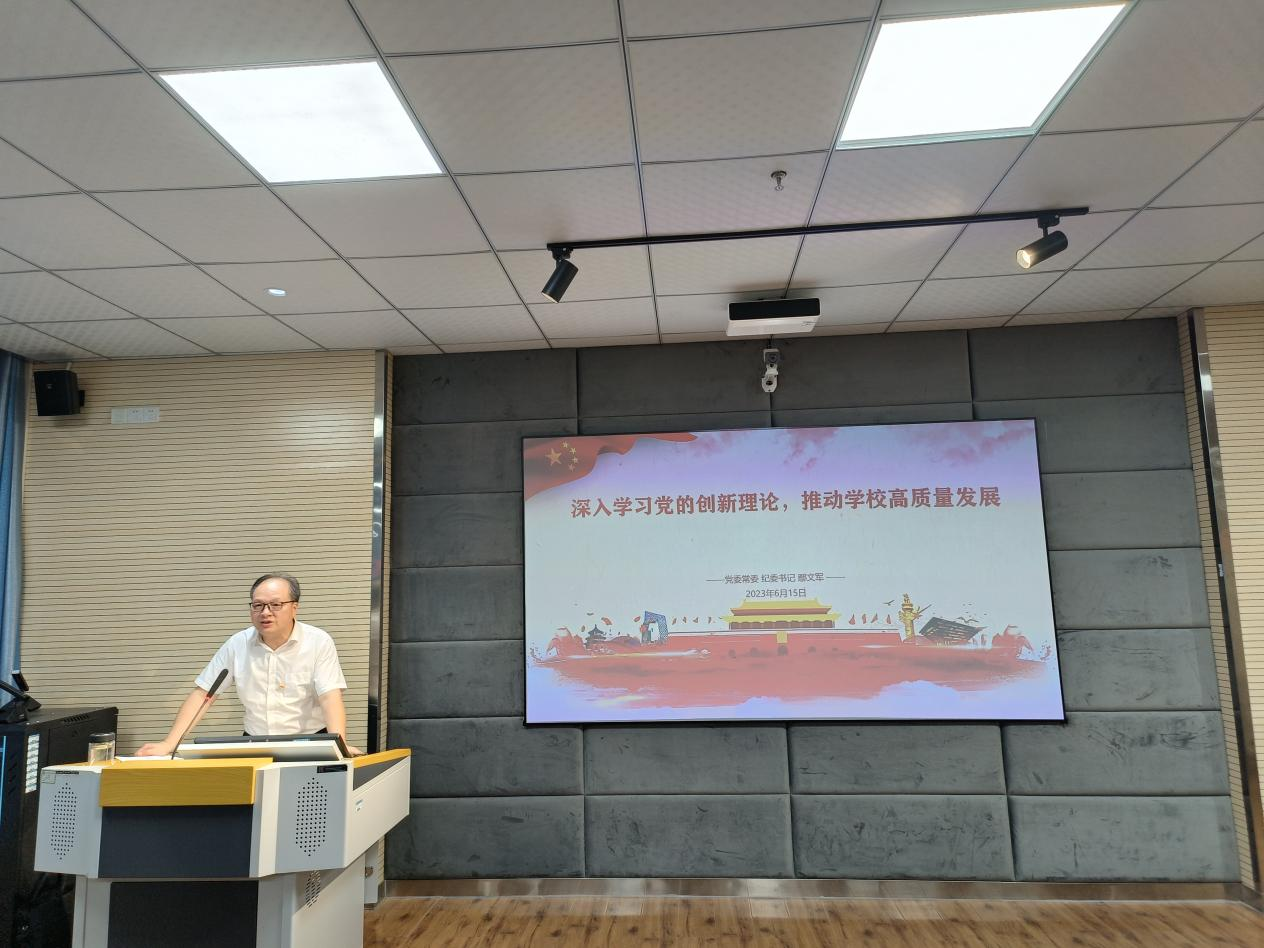 鄢文军强调,要自觉用习近平新时代中国特色社会主义思想武装头脑、指导实践、推动工作,全面准确领会其丰富内涵、思想体系和实践要求,以饱满的斗争状态、昂扬的奋斗姿态助力学校高质量发展,投身全面建设社会主义现代化国家新征程。