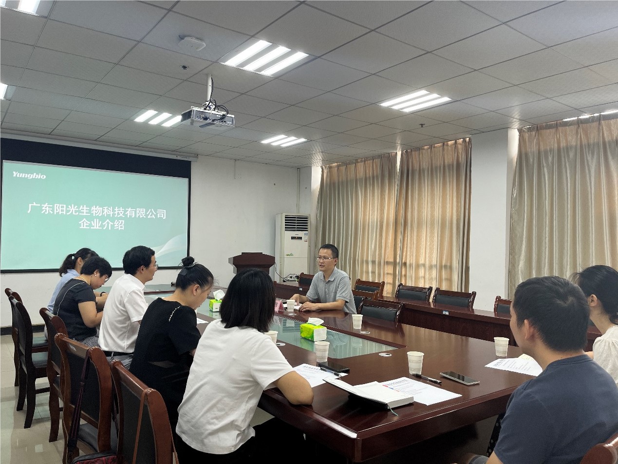为加强产学研创新,推动科技与产业深度融合,切实促进科技成果转化落地,8月19日上午,公司临床医学95级本科员工、广东阳光生物科技有限公司总经理钱晓东应邀来vsport体育就产学研合作进行交流。vsport体育部分科研团队成员参加座谈会,会议由经理蔡飞主持。
