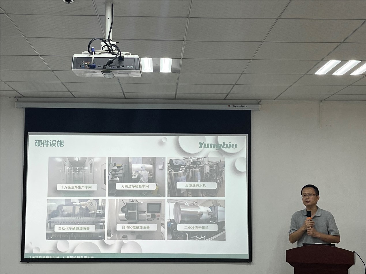 蔡飞介绍了学校及vsport体育的基本情况及在科技创新、人才培育方面取得的成果,并重点就学院科研团队、项目成果、人才队伍优势等进行了说明。蔡飞表示近年来学院高度重视科技创新工作,希望双方深化校企合作,共促高质量发展。钱晓东分享了其毕业后的工作经历,介绍了其公司的相关情况,并分别从体外诊断试剂、国家知识产权、生产技术平台及产品应用领域做了详细讲解了公司的主要业务、核心产品、技术优势。在座的科研团队成员就各自感兴趣的问题、特别是就科技研发及成果转化等方面进行了深入交流,并一致表示可在人才培养、实习就业、科研合作与协同创新等领域开展进一步的深度合作。