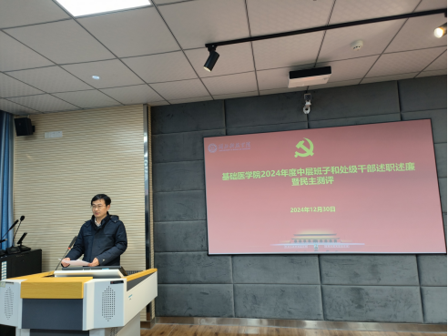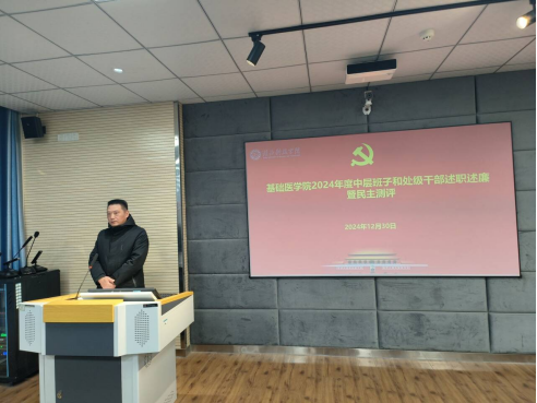 在大会上,蔡飞经理代表学院领导班子进行了述职述廉报告。学院4位领导班子成员依次就德、能、勤、绩、廉等方面,进行了2024年度的个人工作述职。
