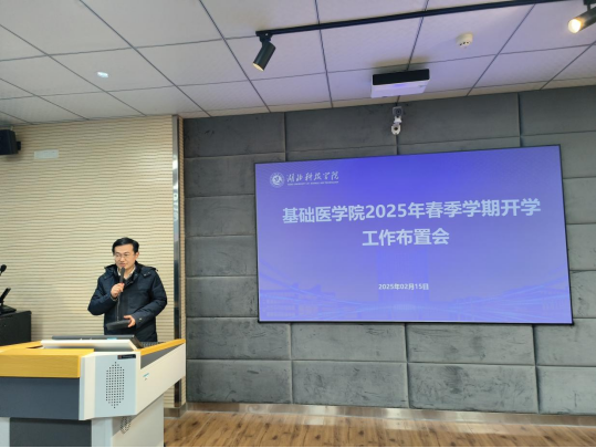 经理蔡飞在讲话中充分肯定了全体教职工在2024年工作中付出的努力和取得的成绩。他指出,随着人工智能等新技术的快速发展,医学教育面临着新的机遇和挑战。他强调,要始终把安全放在首位,守住政治安全、人身安全等底线。要认真学习制度文件,规范工作流程。要积极组织员工参加各类竞赛,提升员工实践能力。要充分发挥学院优势,加强人才培养,为学院发展注入新的活力。