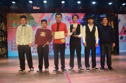 在10秒倒计时声中,新生达人秀决赛正式开始。比赛中精彩的节目层出不穷,既有获得冠军的2号选手任志航带来的带感popping,又有亚军5号选手冯伟健和9号组合梦想女孩带来的别具风情的异域舞蹈,还有受人青睐的6号汪鸿志带来的深情舞蹈和10号选手杨艺硕的磁性嗓音,以及点燃了全场气氛的11号选手郝瑾、罗培、刘梦蝶的惹火拉丁……精彩绝伦的表演,令人应接不暇。决赛现场的另一个亮点来自湖北省“高校达人秀”比赛的优秀选手嘉宾带给观众们的惊喜,让全场步入了另一个高潮。