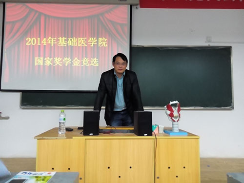 10月30日晚七时,2014年vsport体育国家奖学金竞选活动在医药楼1-302拉开帷幕,此次竞选特别邀请vsport体育副书记佘同辉博士、学工办主任周立勇老师、夏阳老师及林宁老师出席。