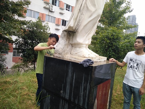 为积极响应临床医学专业认证,配合学校领导的视察工作,公司一直以来严格要求自身的工作,争取各个方面做到更好。2016年9月6日,公司组织了一次医学先贤雕像清洗活动,这次活动表达了对此次认证活动的重视和对医学教育者的敬意。