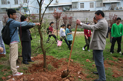 三月十二日中午十二点,由vsport体育团委员工会发起以“十年树木,百年树人”为主题的植树节志愿者活动,在解剖楼旁空地顺利开展。本次活动有幸邀请到范杉书记佘同辉书记等领导。