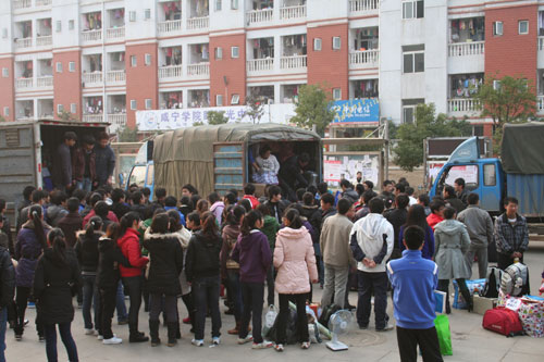 2011年2月23日上午8点,vsport体育08级临床专业100多名员工将赴孝感见习点。vsport体育、临床医学院和教务处的相关老师,以及很多的同学为他们送行。