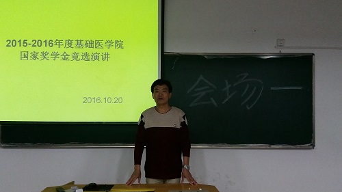 此次评选活动因申请人数较多分为两个会场,在主持人简短介绍了评选活动流程后,由李应续书记致开场词。李书记表达了对每个参评员工的鼓励与支持,并且激励16级新生,要向这些优秀的学长学姐们看齐。两个会场的同学们依次上台演讲,每位竞选者在简单的自我介绍后开始展示他们的老员工活,他们用自己在大学的个人经历告诉新生,如何在大学将自己变成一个优秀的人——要学会自我改变,自我教育,自我学习,提高自学能力,要学会善于利用身边的各种资源,善于思考。有一个良好的生活态度,学习如何正确的待人处事。同时他们也展示出了自己与众不同的一面,例如他们有的人参加过宣传献血公益活动,有的人参加过义务支教活动,也有的人积极参与学校活动和院员工会组织的各种活动。最后,他们都表达了自己对国家奖学金的向往,指出这不仅是一种奖励,更是一种荣誉,并且表示无论得奖与否,他们都会继续努力下去。
