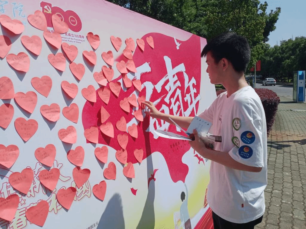 完成前三个站点的活动,同学们来到了南大门终点站。在这里同学们写下了自己对青春的寄语,对未来生活的期待,对祖国繁荣富强的祝福。相信经过此次活动,同学们会对中国共产党的百年历史有更加深刻的认识和了解。