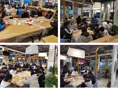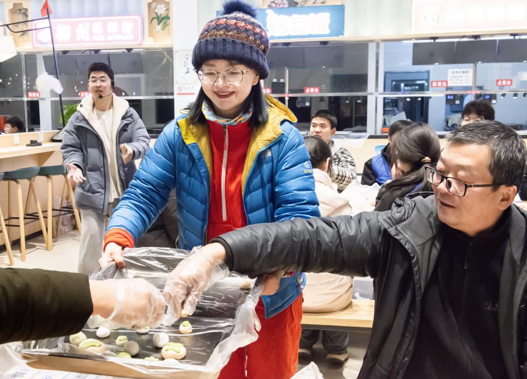 师生们踊跃参加了包汤圆、猜灯谜、圈圈乐等活动,在自主献唱的动人歌声的烘托下,现场气氛和谐活跃,欢笑声此起彼伏。大家包出了寓意“事事平安”的柿子形状以及各种自创样式的汤圆,在品尝的过程中不时交谈畅想;在一排排挂着的灯谜面前,有人驻足思索,有人缓步前行,有人欣喜揭下;大家用猜对的灯谜换来数量不等的套圈,投向或近或远的奖励零食,纷纷收获自己的一份小小确幸。集体班会就像一艘行将开启的航船,载着轻松和欢笑,为师生们掀开了新一年工作学习的希望与收获之旅!