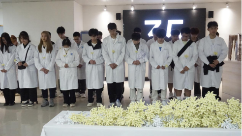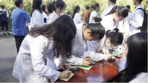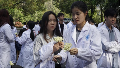 师生们先在标本馆入口处制作花束和卡片,将自己对“无言良师”的敬意寄托在花束和卡片上;然后有序进入标本馆,认真观看悼念视频,专注聆听视频中的每一字每一句,深切体会到先辈们的伟大牺牲和贡献,加深了对医务工作者和捐献者的敬意和感激之情。潘丹老师现场进行了生动的器官捐献宣传,引发了大家对器官捐献的关注与思考,认识到器官捐献者的无私可贵。