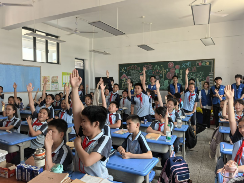 活动当天,志愿者们早早抵达泉都小学,精心布置活动场地,将五颜六色的粽子玩偶、制作艾草锤的材料摆放整齐,等待孩子们的到来。随着活动正式启动,教室里瞬间沸腾起来。在趣味盎然的游戏环节,孩子们在志愿者的引导下,分组参与击鼓传粽、飞花令等传统游戏。鼓声急促时,彩色粽叶包裹的“幸运粽”在孩子们手中飞速传递;飞花令对决中,一句句与端午、母爱相关的诗词从孩子们口中脱口而出。现场欢声笑语不断,孩子们不仅沉浸在欢乐的氛围里,更在寓教于乐中加深了对古诗词和节令文化的理解。游戏结束后,捧着粽子玩偶的获胜小朋友们脸上洋溢着自豪的笑容。