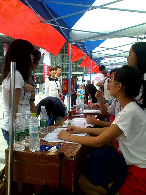 到达学校后,新生报到确认、校园卡领取及激活、缴费情况确认和住宿通知单、体检单领取,这些都由各院的员工会成员负责,之后带领新生去寝室以及熟悉校园由志愿者来完成,流水线似的服务简化了入学手续,为广大新生报到带来了极大的便利。同时还专设了家长休息处和饮水处,并安排员工会和志愿者为家长服务,对于贫困新生,公司专门开辟“绿色通道”,通过申请国家助学贷款等方式,帮助新生解决资金困难问题。公司各级员工干部及志愿者积极投入到迎新工作中,各司其职,各尽其力,积极为迎新工作的顺利开展做贡献。