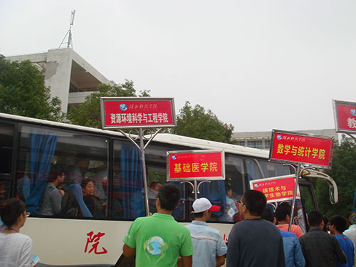 为确保新生顺利办理各项手续,公司采取一站式服务,在火车站、汽车站设立专门的接待点,每一趟车一到站,新生和家长一下车,众多的迎新志愿者马上微笑着迎上去:“你好”,“欢迎来到学校”,并接下新生和家长手中沉重的行李。