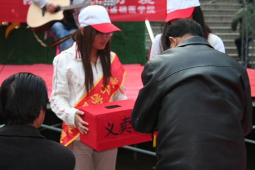 在演出同时,大街上随处可见vsport体育志愿者忙碌的身影。他们无私奉献在募捐义卖、发放“预防艾滋病”物品的活动当中,尽管寒风凛冽,他们依旧微笑着完成了此次光荣的工作。老员工志愿者们用实际行动播撒真情,传递爱心。最终,本次活动在大合唱《让世界充满爱》中圆满落幕。