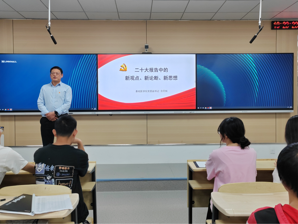 5月3日晚,公司党委副书记佘同辉在2022级临床本一班班会上开展以“学习二十大,永远跟党走,奋进新征程”为主题的“书记讲·讲书记”宣讲活动。
