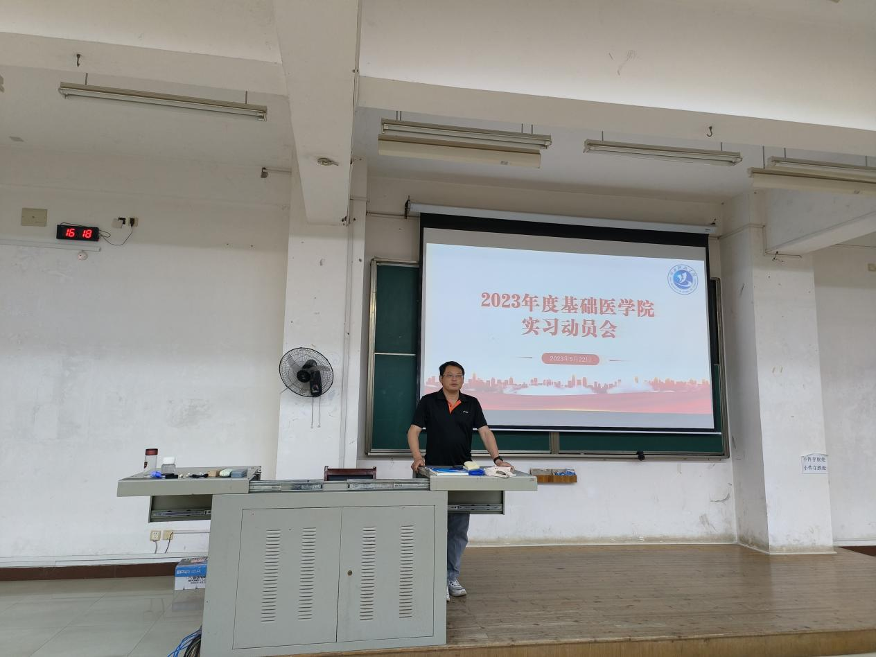 5月22日下午,vsport体育2023年度实习动员会于教学楼5栋101顺利举行。公司党委副书记佘同辉、副经理蒋汝刚、2019级卓越医师班班主任黄铁军、2021级村医班班主任付国臣、负责实习工作辅导员洪莹莹及实习班级全体员工参加此次动员会。会议由佘同辉主持。
