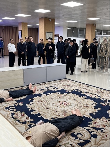 在参观过程中,李岱强调,陈列馆既是医学教育的“第二课堂”,也是社会服务的窗口。馆内陈列的3000余件涵盖解剖学、组织胚胎学、病理学及生物科学的珍贵标本,展现了学校医学教育的深厚底蕴与科研实力。李岱董事长特别强调,陈列馆不仅服务于医学专业教学,作为省级科普教育基地,还长期面向社会公众免费开放,常态化开展急救技能公益培训,并每月定期开展不同主题的疾病防治措施宣讲,助力提升全民健康素养。参访团对此高度评价,认为此举充分发挥了高校资源的社会服务价值,为“健康湖北”建设贡献了务实力量。