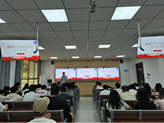 佘同辉作总结讲话,他指出,同学们要进一步提高思想认识,实习工作关乎学校人才培养质量和社会需要,要认真开展实习工作,将所学理论与实践相结合,严格遵守学校和医院的各项管理规定,加强安全管理,在保质保量完成学习内容的同时做好人生规划,为迈入工作岗位打好坚实基础,希望同学们通过实习能实现蜕变与成长。