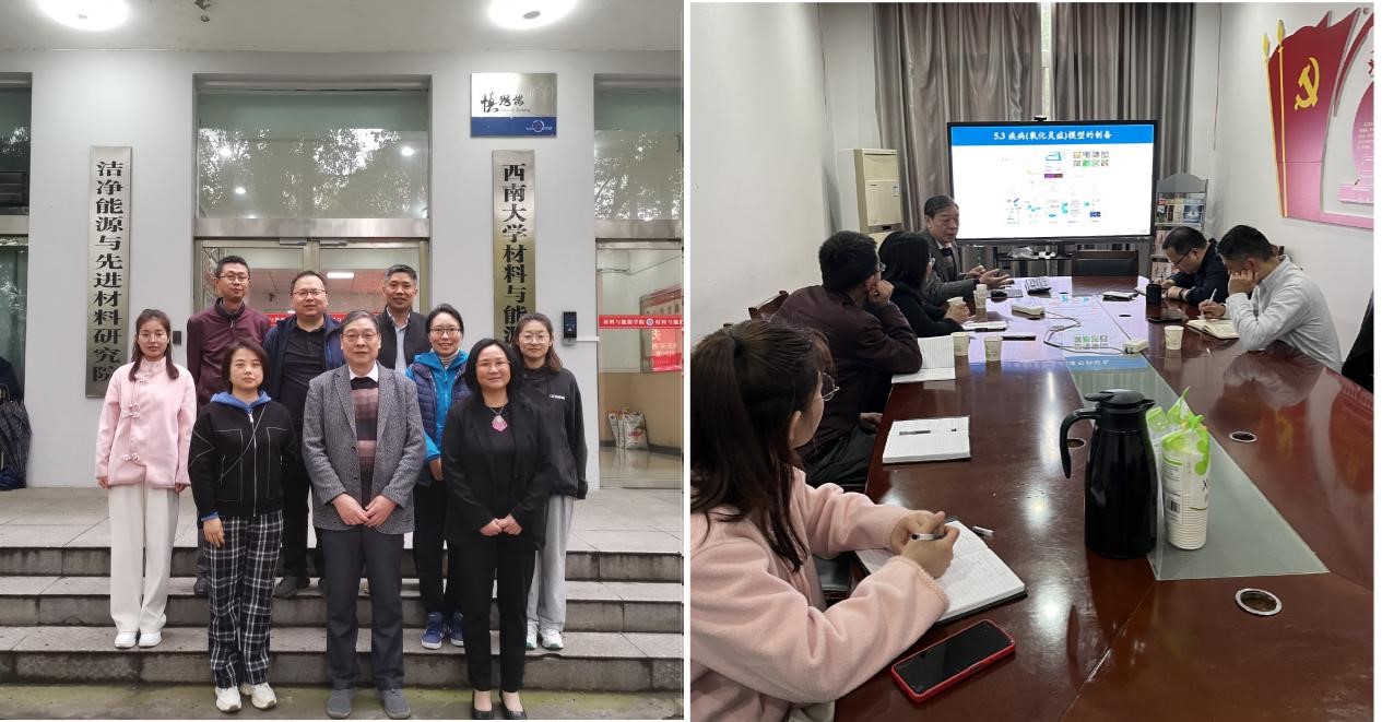杨旭教授一行首先到西南大学材料与能源学院拜访,杨旭教授做了题为“天然抗氧化剂产品的研发和利用”的学术讲座,马萍教授介绍了环境疾病与全健康校级重点实验室的基本情况;西南大学鲁志松教授、刘英帅教授、余玲教授分别介绍了各自课题组的研究进展情况,双方围绕如何继续开展合作研究工作进行讨论,并就共同感兴趣的研究方向进行交流。