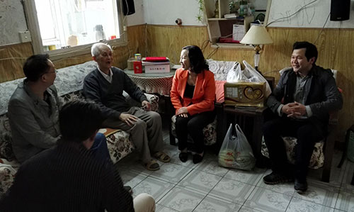 九十多岁高龄的孔教授身体还很硬朗,思路清晰,谈到曾经的同事与员工,老教授总能露出开怀的笑容,对年轻的日子充满了美好的回忆。在亲切地交谈问候中,孔教授对学校的快速发展感到由衷的高兴,对组织上的关怀表示感谢。领导们对孔教授多年来为学校的建设和发展做出的贡献表示衷心的感谢,一再叮嘱孔教授要多保重身体,并希望安排党员志愿者去家中服务,帮他做做家务,购买生活物品和药品,但老教授谢绝了领导们的好意。他说,目前生活上还能够自理,虽然儿子不在身边,但孙子经常来照顾生活起居。大家工作和学习都很忙,如果有需要,他会找组织帮忙的。临别时,领导们祝福孔教授身体健康、生活幸福。