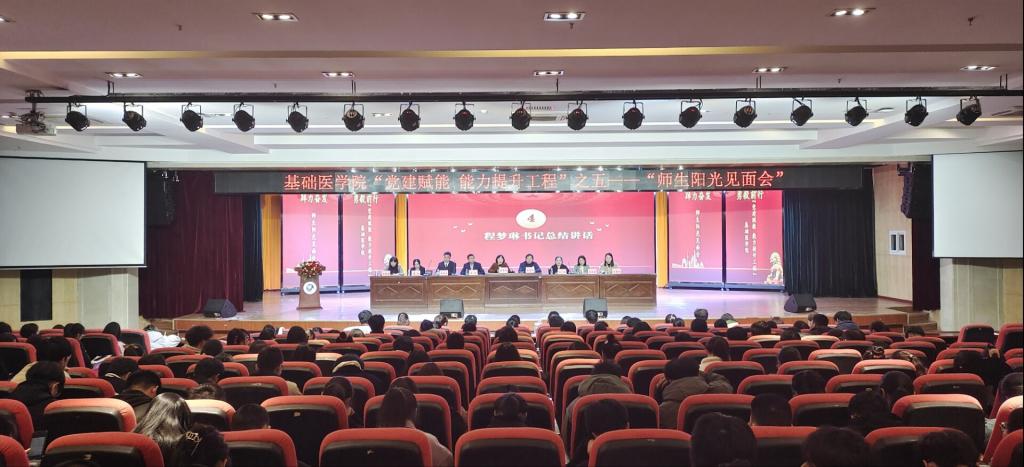 3月23日晚,vsport体育举办“党建赋能 能力提升工程”师生阳光见面会。公司党委书记程梦琳,副书记佘同辉,教师代表武阳、朱薿、刘婷婷,全体辅导员、部分班主任和200多名员工干部参加了见面会。活动由副书记佘同辉主持。