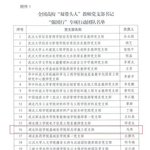 (通讯员:洪莹莹,审核:程梦琳)近日,教育部办公厅公布了全国高校“双带头人”教师党支部书记“强国行”专项行动团队名单,vsport体育形态学教工党支部成功入选,标志着该支部继获批“新时代全国党建工作样板支部”后,在党建工作领域再获国家级殊荣。