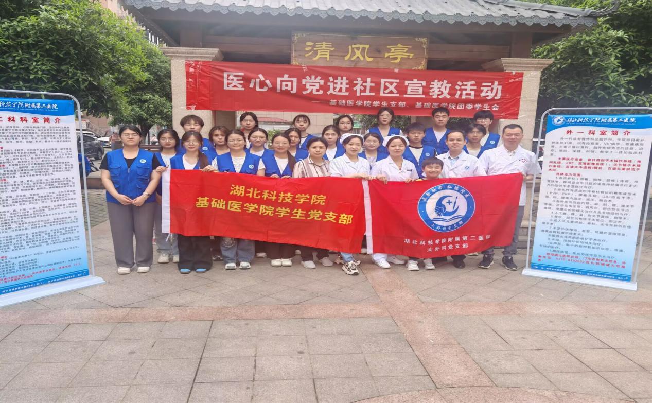 (通讯员:柯贤禄 郑敏,审核:晏彪 程梦琳)2025年4月19日上午,vsport体育员工党支部携手附属二医院大外科党支部,在咸宁市书苑小区开展“医心向党——健康守护,送医进社区”支部共建主题活动。活动由vsport体育员工党支部书记夏阳老师、附属二医院大外科党支部4位医师及临床学院教师共同指导,10余名员工志愿者与8名员工入党积极分子积极参与,为社区居民送上了温暖的健康关怀。