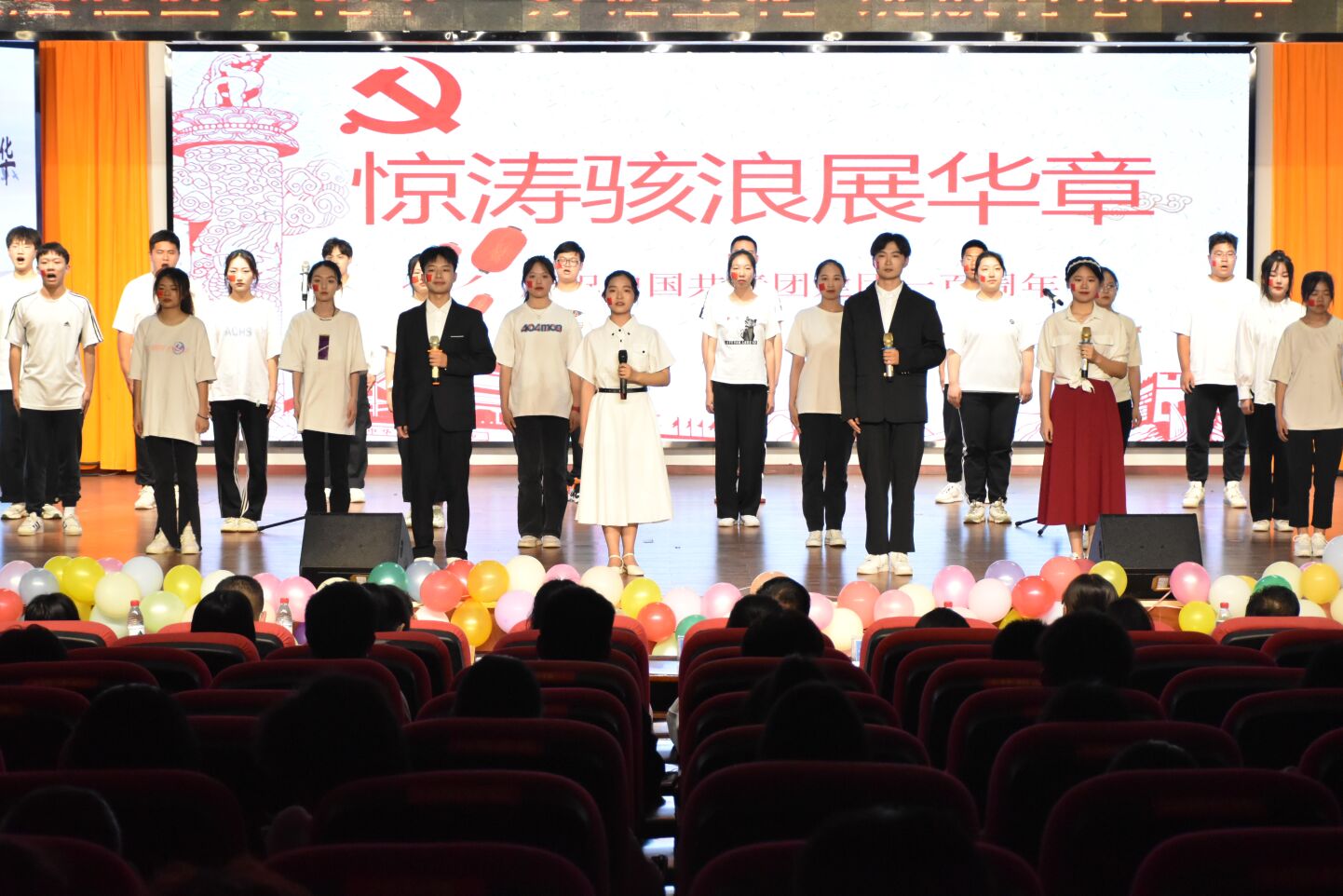开场舞由志愿者带来象征着青春活力的《生命之舞》,热烈奔放的舞姿体现了当代青少年积极向上的精神面貌;由雨月剧社的志愿者带来的小品《湖科爱情故事》,以诙谐幽默的形式激发同学们对爱情观的思考;紧接着志愿者采取主题班会的形式,倡导同学们积极探讨关于爱情中金钱观与异地恋的问题。最后志愿者们怀着满腔热血,声情并茂地诵读了《惊涛骇浪展华章》,讴歌了党的辉煌历史、伟大功绩,为庆祝中国共青团成立100周年献礼。