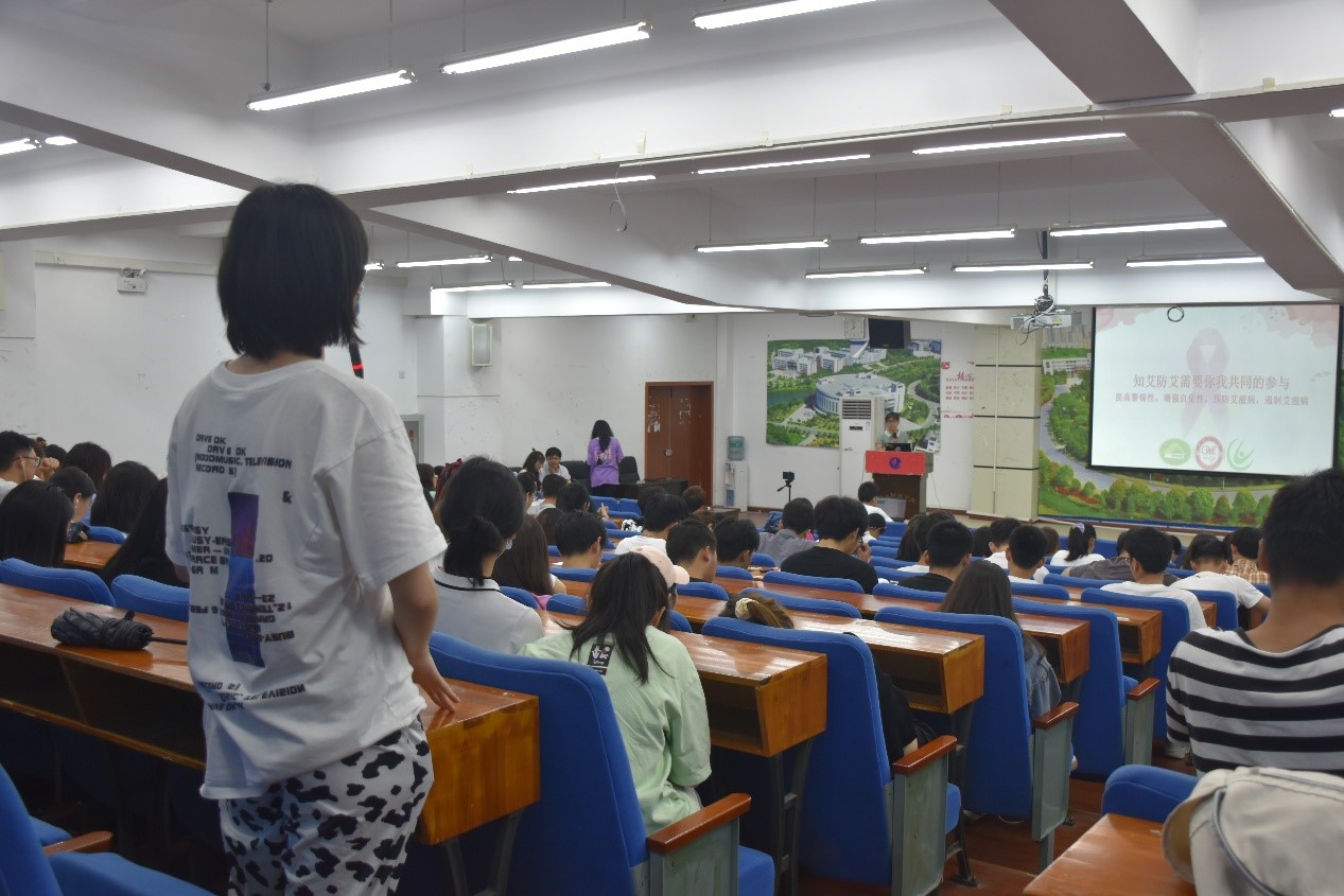 (通讯员/陈吉伦) 为向老员工普及艾滋病相关知识并提高老员工防艾意识,vsport体育预防专业负责人王俊芳老师及其随行志愿者于5月27日晚上七点,在教3—402举办了主题为“揽月大讲堂——知艾防艾,主动检测,健康生活”的讲座,近300名员工参加讲座。